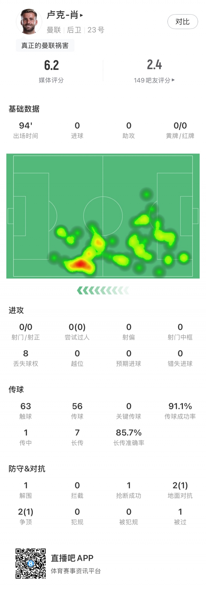 发挥灾难!防不住人、拿不住球,曼联3个丢球卢克肖均有错误