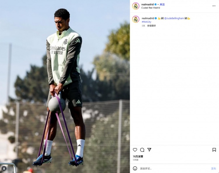 10月21日讯 皇马近日在官方社媒发布了一张贝林厄姆的练习 照,快速 走红,点赞数高达78万次。