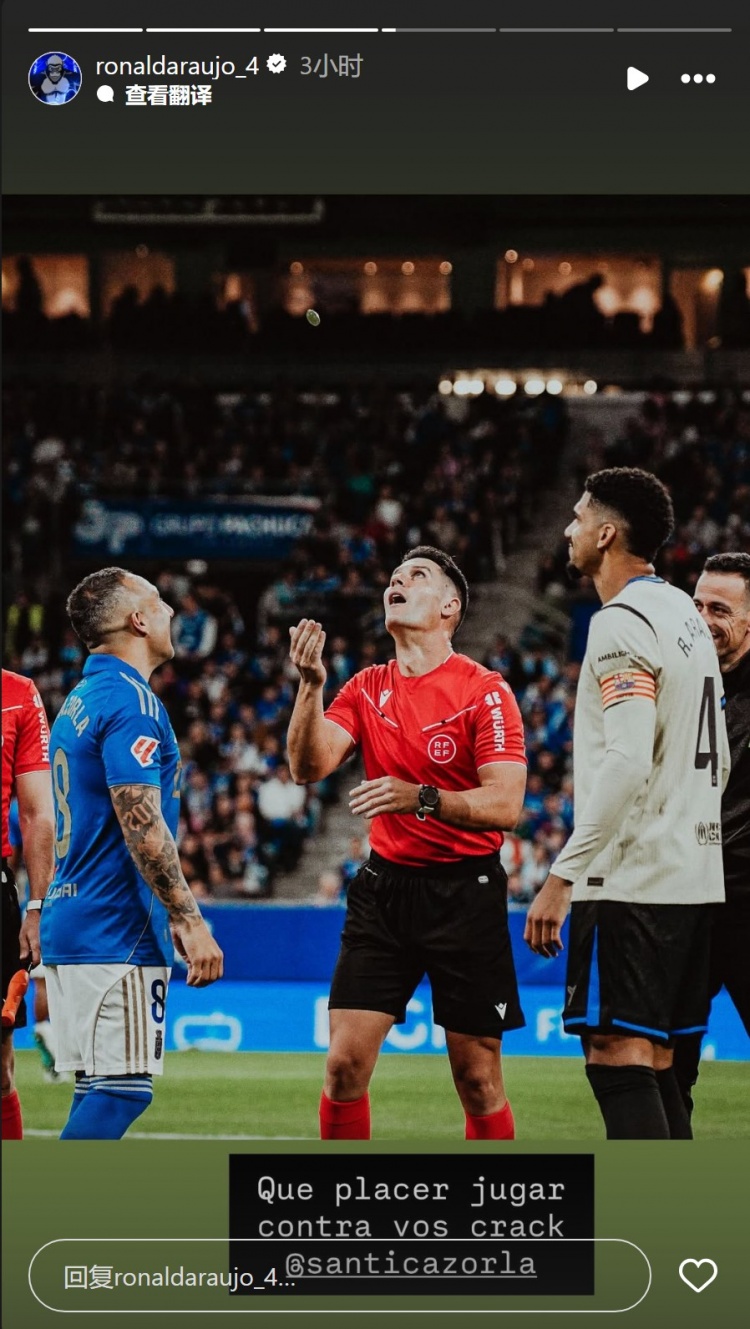 巴萨领队 阿劳霍社媒晒出与卡索拉赛前选边的合照英超投注在线平台,苏超直播在线观看配文:“很高兴与你同场竞赛 ,大师。”
