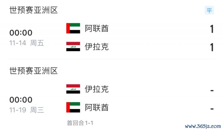 11月14日讯 世预赛亚洲区第五阶段首局 ,伊拉克与阿联酋1-1战平,双方在的第二局 较量前继续保持微妙均衡 。