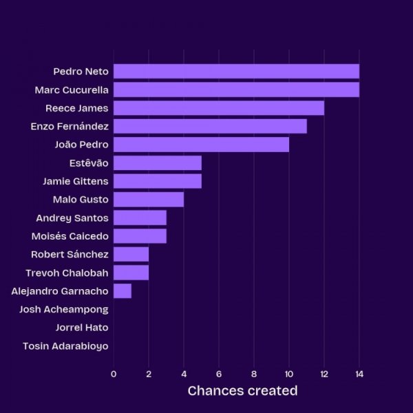 切尔西本赛季英超创造机会榜:内托、库库各14次,詹姆斯12次