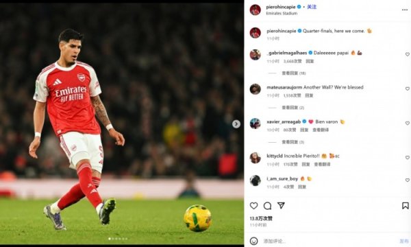 足球博彩入门教程 10月30日讯 阿森纳在本轮职业联赛 杯2-0力克布莱顿,因卡皮耶轮换登场表现抢眼。 数据统计 显示,他本场赛事 贡献4解围1抄截 1阻拦 而且2造违例 ,7次对峙 6次成功。 他也在赛后通过社媒晒出自己的赛事 照并配文:“八强战足球博彩入门教程,我们来了!”队友加布里埃尔也现身评论区鼓励道:“助威 !”......查看更多